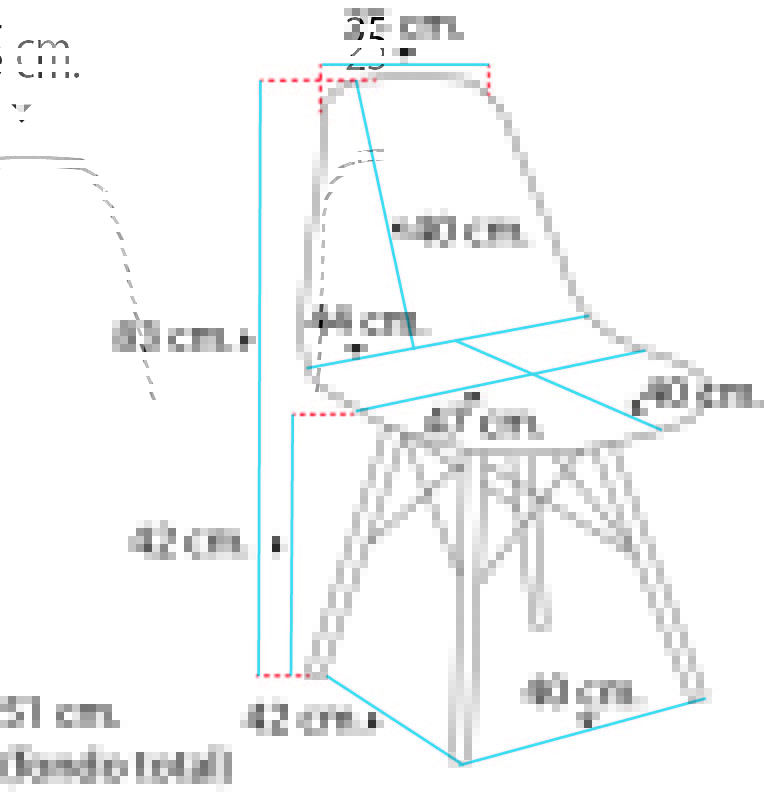 - Asiento: polipropileno / microfibra / policarbonato.